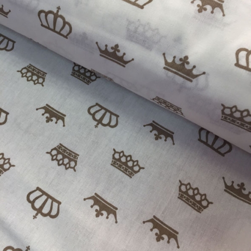 001б/7 Бязь набивная, 125 г/м, 100%хл, ш. 150см (Короны кофе на белом 18)