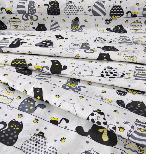 001б/7 Бязь набивная, 125 г/м, 100%хл, ш. 150см (Коты в шляпах на белом 1)