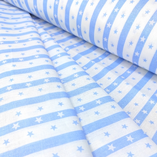 001б/7 Бязь набивная, 125 г/м, 100%хл, ш. 150см (Звезды на полосе голубой 3)