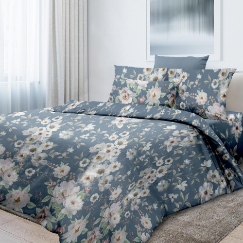 002б/2 Бельевое полотно набивное "Тейково", 155г/м, ш. 220см (21130 Бутон на сером)