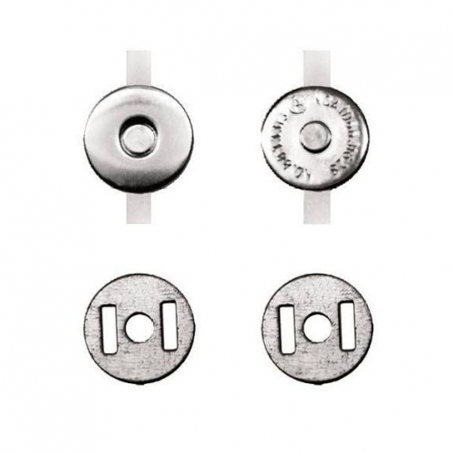 Кнопка магнитная– идеальная застежка для сумок,верхней и специализированной одежды. Кнопка магнитная, благодаря магниту, сама находит нужное положение и закрывается в “замок”. От диаметра магнитной кнопки зависит ее сила притяжения. Магнитная кнопка – это элемент швейной фурнитуры, изготовленный из металла с вмонтированным в него неодимовым магнитом. Основное его предназначение – застегивать края одежды, обуви, сумки и других галантерейных изделий. Магнитные кнопки изготавливают из нержавеющих металлов. Цветовые оттенки готовых изделий могут быть самыми разнообразными – никель, золото, антик, темный никель, оксид.