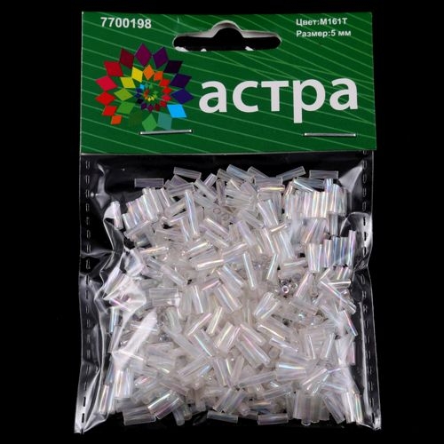 04 АСТРА Бисер СТЕКЛЯРУС Крученый 5мм 20гр (М-161Т белый/прозр.(крученый))