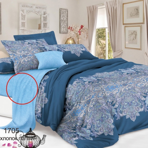 050б/3 Поплин с рисунком, 112г/м, 100% хл, ш. 220см (На голубом контур бутона 1705)
