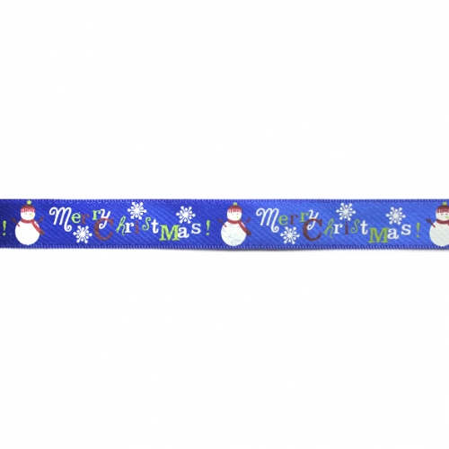15мм Лента атласная с рисунком/уп.45,7м (снеговики на синем)