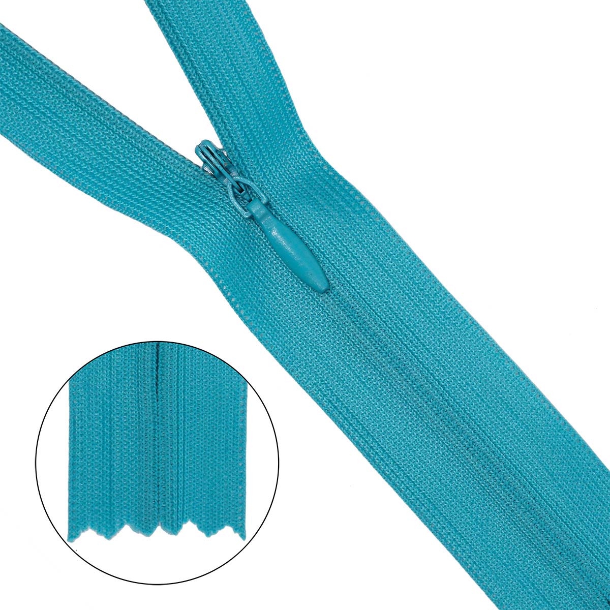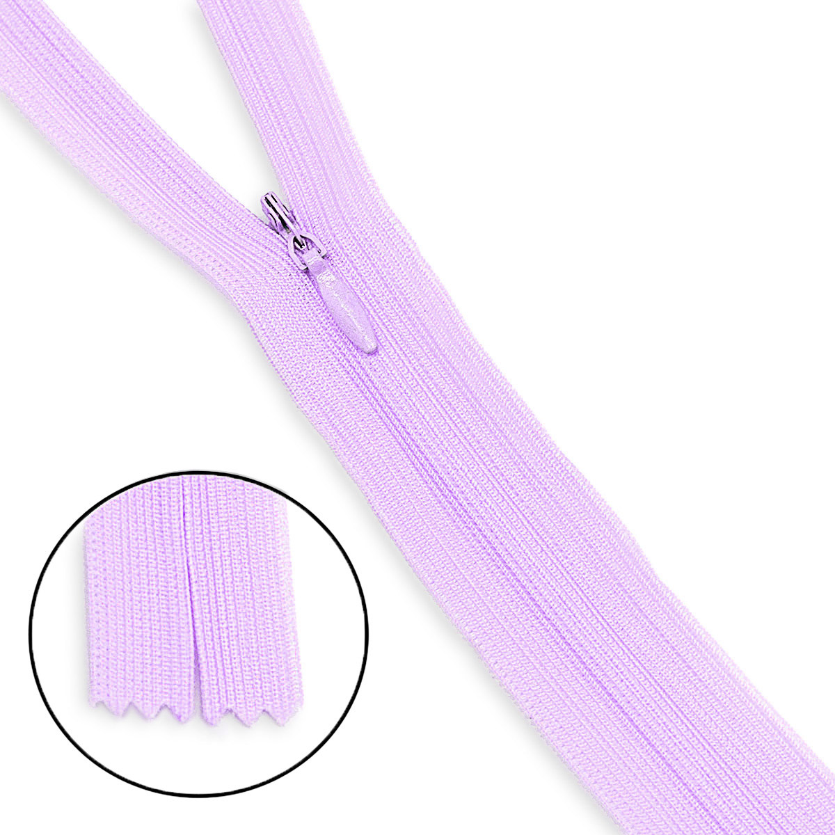 Неразъемная молния. Применяется в детских и женских изделиях из легких тканей. Звенья застежки расположены с изнаночной стороны молнии и в застегнутом виде не видны. Температура при глажении 60-100 С