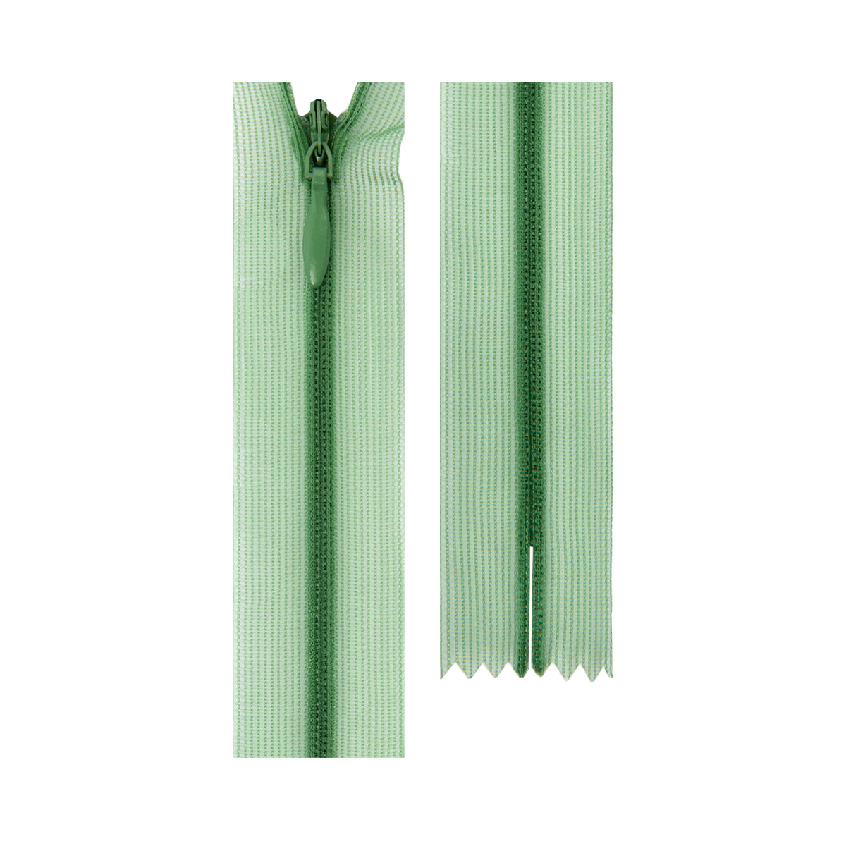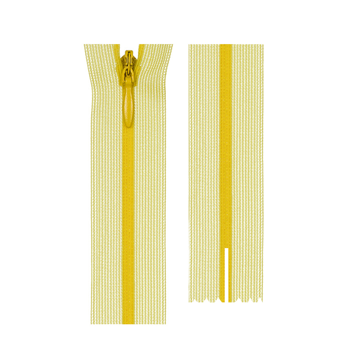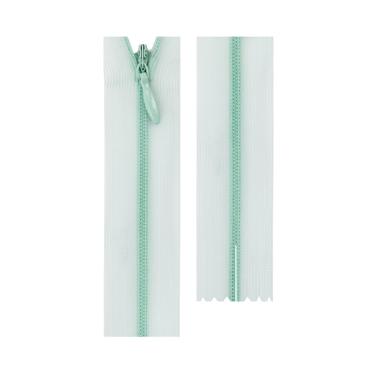 Неразъемная молния. Потайная молния спираль на сетчатой тесьме применяется в пошиве изделий так же, как обычная потайная молния.¶Главное её достоинство – более тонкая и незаметная тесьма, сотканная из