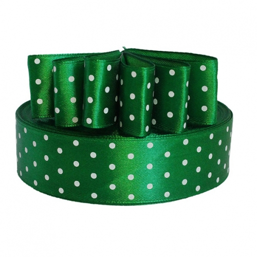 25мм Лента атласная "горох"/уп.32м (3042 зеленый)