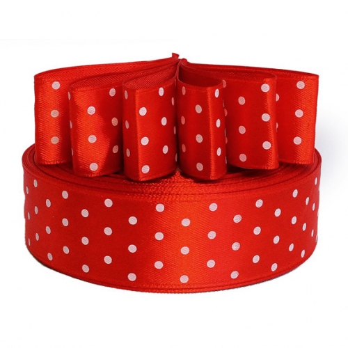 25мм Лента атласная "горох"/уп.32м (3095 красный)