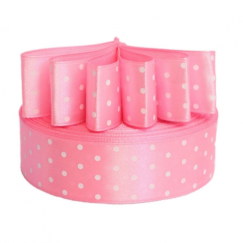 25мм Лента атласная "горох"/уп.32м (3077 розовый)