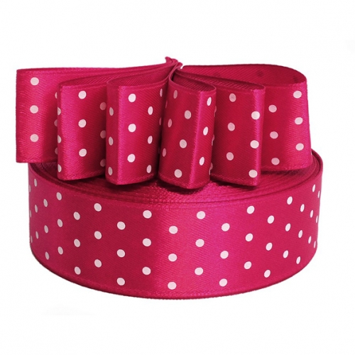 25мм Лента атласная "горох"/уп.32м (3081 малиновый)