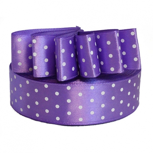 25мм Лента атласная "горох"/уп.32м (3119 сиреневый)