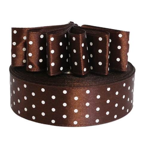 25мм Лента атласная "горох"/уп.32м (3139 коричневый)