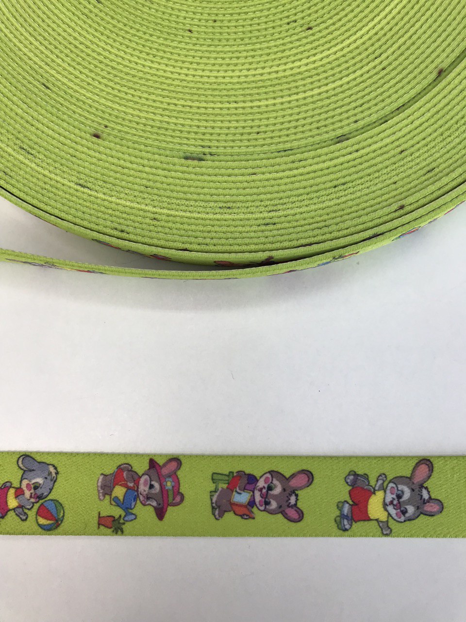 25мм Резинка тканая Support "Детская"/уп.25м (Зайцы на зеленом)