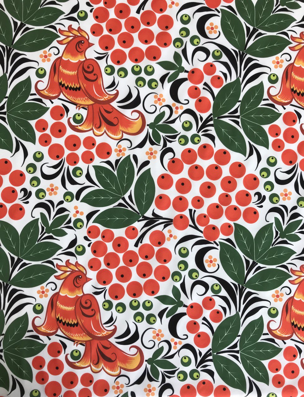 28к Габардин Digital, 260 г/м, ш. 150 см (Хохлома на черном 4000.02)