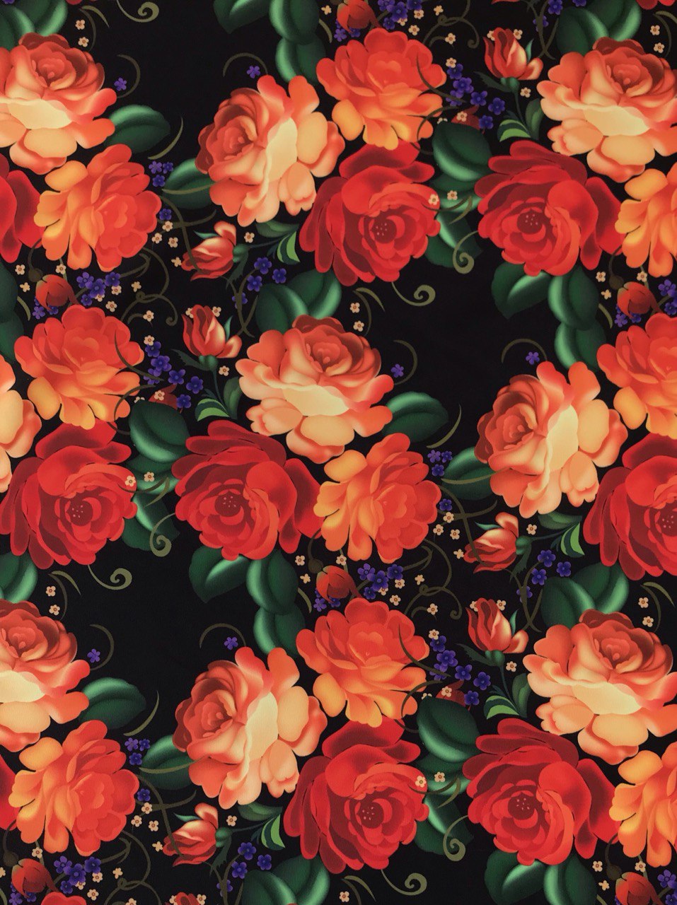 28к Габардин Digital, 260 г/м, ш. 150 см (Розы на синем (984 платоч))
