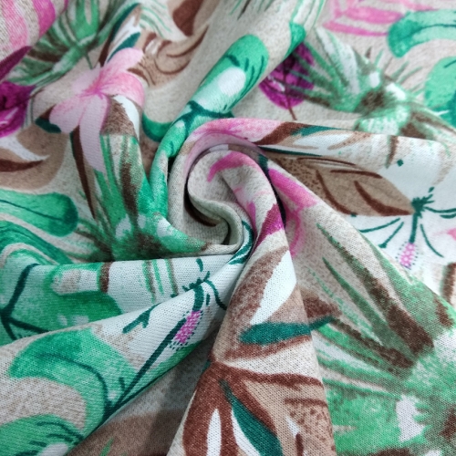 2бт/18 Кулирная гладь с рисунком, о.е, 140г/м, 100%хл, ш. 180см (Листья на бежевом)