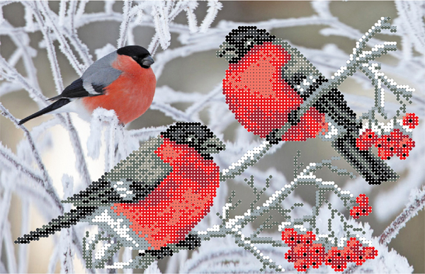 4027 Рисунок на шелке 28*34 "Снегири" купить по лучшей цене с доставкой - интернет магазин №1 в России