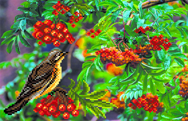 4083 Рисунок на шелке 28*34см "Дрозд-рябинник"