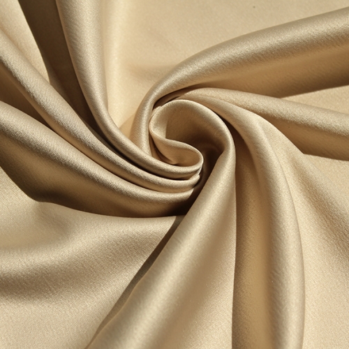 Плотная ткань с гладкокрашеной отделкой. Лицевая сторона гладкая, с мягким атласным блеском. Изнаночная - матовая, с зернистой поверхностью. Материал прочный, эластичный, хорошо драпирующийся.