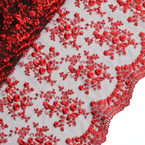 53Д/6 Вышивка на сетке "Букетик", 100%п/э, ш. 130см (Красный букетик на черном)
