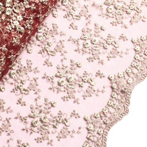 53Д/6 Вышивка на сетке "Букетик", 100%п/э, ш. 130см (Серый букетик на бордовом)