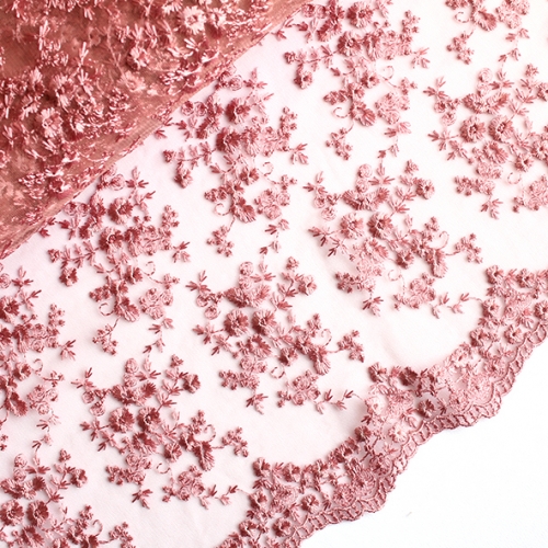 53Д/6 Вышивка на сетке "Букетик", 100%п/э, ш. 130см (Коралловый)