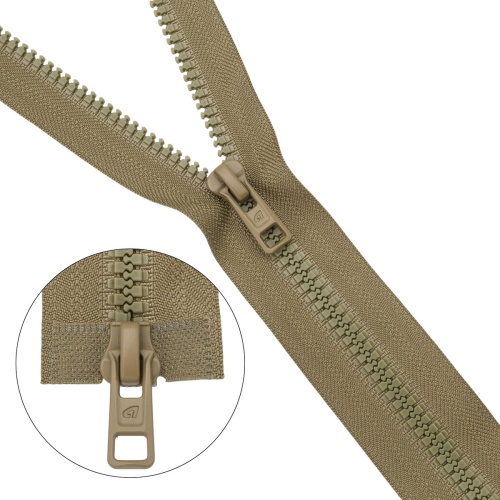 Застежка с улучшенными экплуатационными качествами: скольжение замка по боковым приливам (лапкам) снижает риск попадания материала подкладки в замок и защищает ленту от износа; усиленная, ввиду повышенной прочности крепления звена к ленте; пластмассовый жесткий усилитель ленты предназначен для повышения срока службы застёжки-молния и удобства при эксплуатации; молния имеет отличительный и одновременно узнаваемый внешний вид.