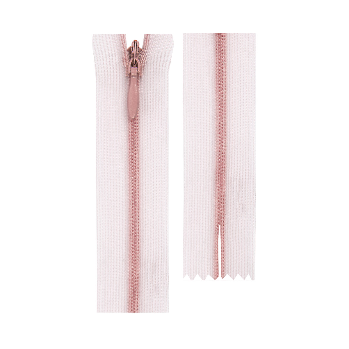 Неразъемная молния. Потайная молния спираль на сетчатой тесьме применяется в пошиве изделий так же, как обычная потайная молния.¶Главное её достоинство – более тонкая и незаметная тесьма, сотканная из