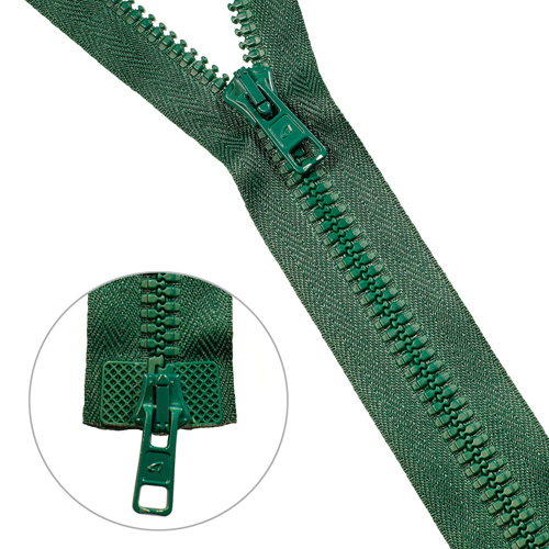 Застежка с улучшенными экплуатационными качествами: скольжение замка по боковым приливам (лапкам) снижает риск попадания материала подкладки в замок и защищает ленту от износа; усиленная, ввиду повышенной прочности крепления звена к ленте; пластмассовый жесткий усилитель ленты предназначен для повышения срока службы застёжки-молния и удобства при эксплуатации; молния имеет отличительный и одновременно узнаваемый внешний вид.