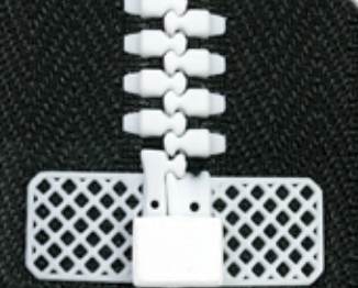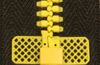 Застежка с улучшенными экплуатационными качествами: скольжение замка по боковым приливам (лапкам) снижает риск попадания материала подкладки в замок и защищает ленту от износа; усиленная, ввиду повышенной прочности крепления звена к ленте; пластмассовый жесткий усилитель ленты предназначен для повышения срока службы застёжки-молния и удобства при эксплуатации; молния имеет отличительный и одновременно узнаваемый внешний вид.