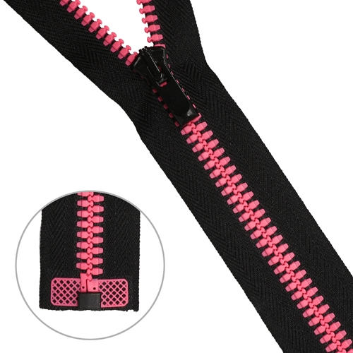 Застежка с улучшенными экплуатационными качествами: скольжение замка по боковым приливам (лапкам) снижает риск попадания материала подкладки в замок и защищает ленту от износа; усиленная, ввиду повышенной прочности крепления звена к ленте; пластмассовый жесткий усилитель ленты предназначен для повышения срока службы застёжки-молния и удобства при эксплуатации; молния имеет отличительный и одновременно узнаваемый внешний вид.