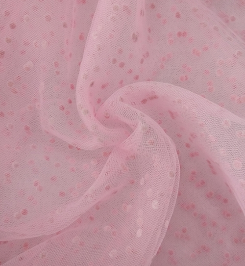 74к/1 Фатин-флок "Точки", 100% п/э, ш. 150см (32 Розовый яркий)