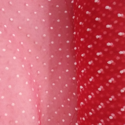 74к/1 Фатин-флок "Точки", 100% п/э, ш. 150см (Красный)