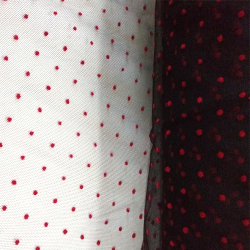 74к/1 Фатин-флок "Точки", 100% п/э, ш. 150см (На черном красные)