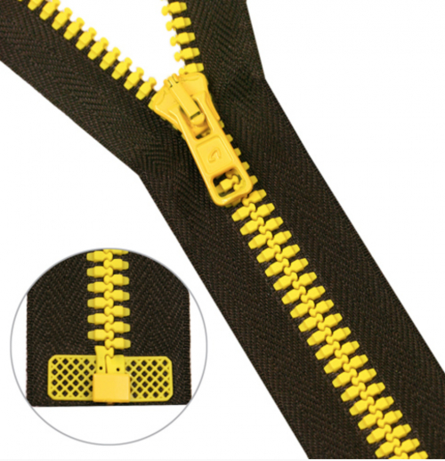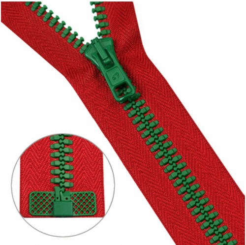 Застежка с улучшенными экплуатационными качествами: скольжение замка по боковым приливам (лапкам) снижает риск попадания материала подкладки в замок и защищает ленту от износа; усиленная, ввиду повышенной прочности крепления звена к ленте; пластмассовый жесткий усилитель ленты предназначен для повышения срока службы застёжки-молния и удобства при эксплуатации; молния имеет отличительный и одновременно узнаваемый внешний вид.