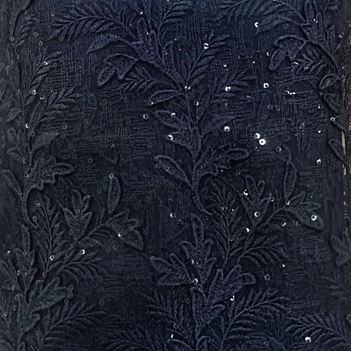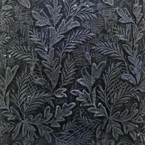 83Д/6 Вышивка на сетке "Листик" с пайеткой, 100%п/э, ш.125см (Черный)