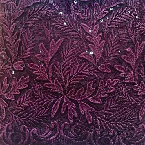 83Д/6 Вышивка на сетке "Листик" с пайеткой, 100%п/э, ш.125см (Бордовый)
