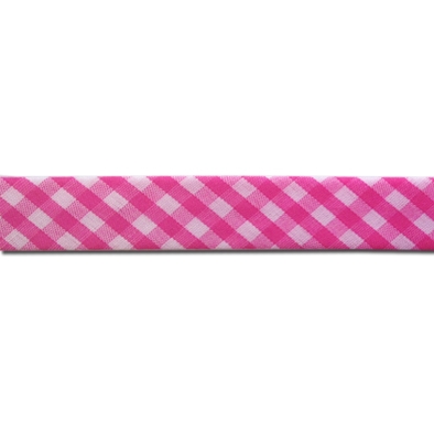 Бейка косая х/б "шотландка" 15мм/уп.65,8м (SB6 розовый/белый)
