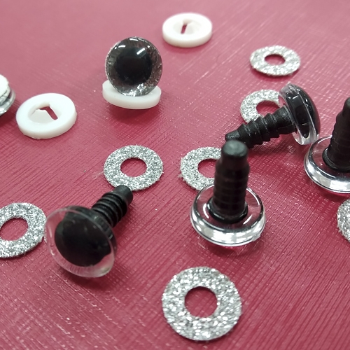 Глазки с искоркой с фиксатором 12мм (50) (серебряный)