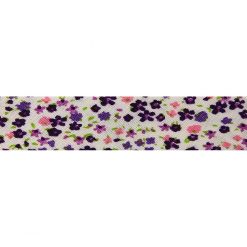 Косая бейка х/б с принтом "Цветочки новые" 15мм/уп.65,8м (FBF218 фиолетовый)