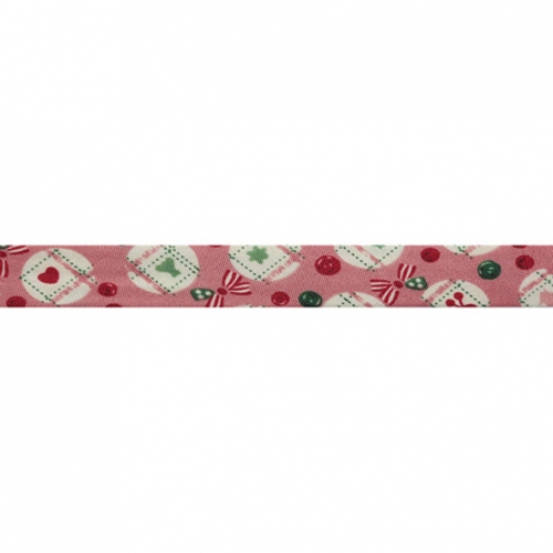 Косая бейка х/б с принтом "Винтаж" 15мм/уп.54,9м (розовый)