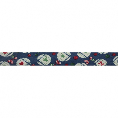 Косая бейка х/б с принтом "Винтаж" 15мм/уп.54,9м (темно-синий)