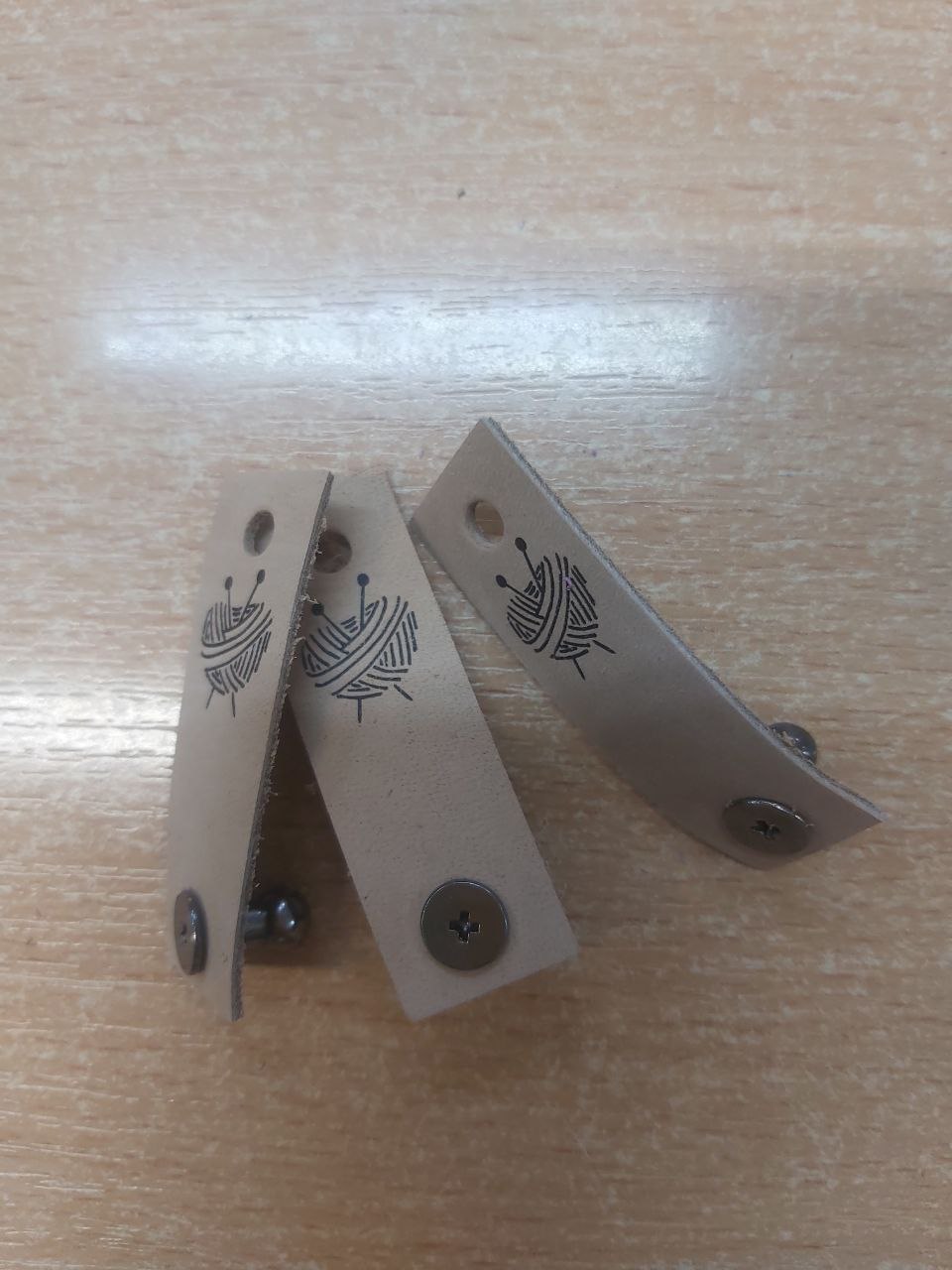Элемент каталога Кожаная бирка с кнопкой "Вязаное сердце" 1,3*5см, (3) [270275]