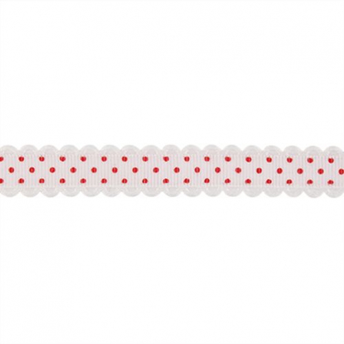 Лента репсовая "горох" YH90 15мм/уп 25м (01 белый/красный)