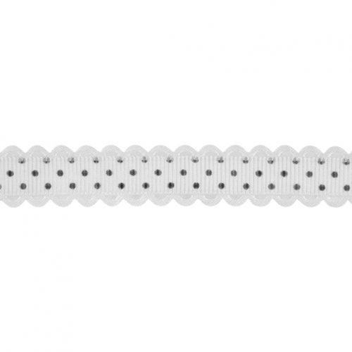 Лента репсовая "горох" YH90 15мм/уп 25м (05 белый/черный)