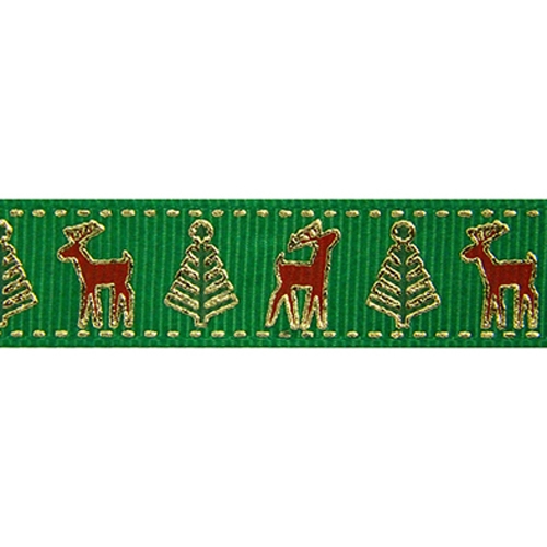 Лента репсовая "Олени" 16мм/уп.22,5м (A5-060 зеленый)