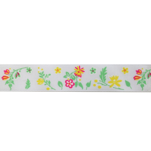 Лента репсовая "Полевые цветы" 20мм/уп.22,86м (белый)