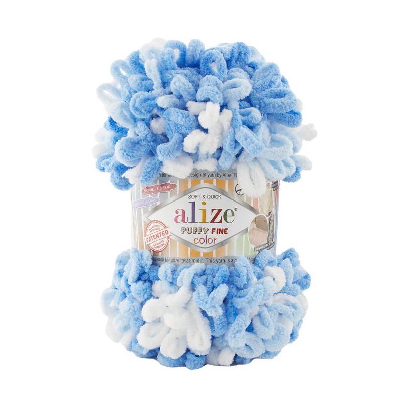 PUFFY FINE COLOR , 100% микроп/э, 100 гр/14 м (6371 ярко-голубой с белым)