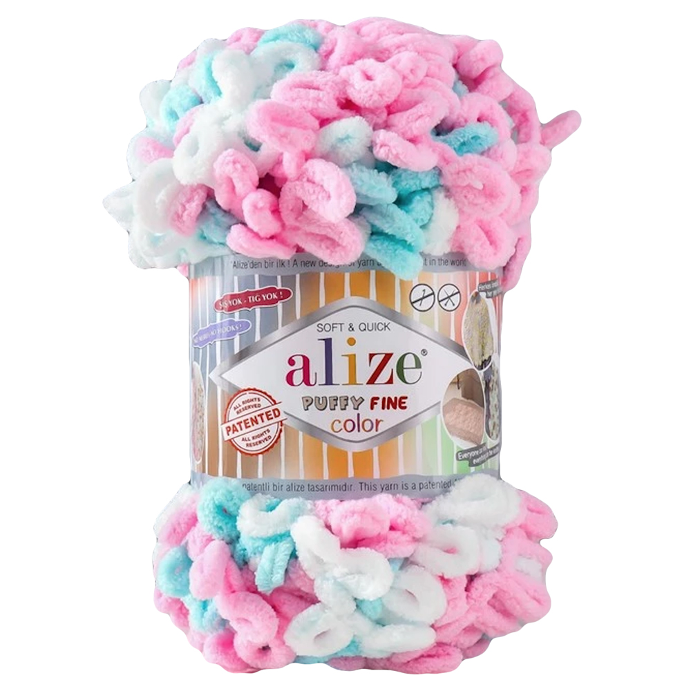 PUFFY FINE COLOR , 100% микроп/э, 100 гр/14 м (6377 голубой/розовый/белый)