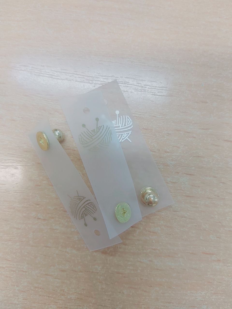 Силиконовая бирка "Вязаное сердце" с кнопкой 1,5*5см, (3) (золотая печать)